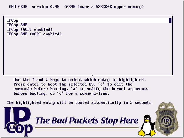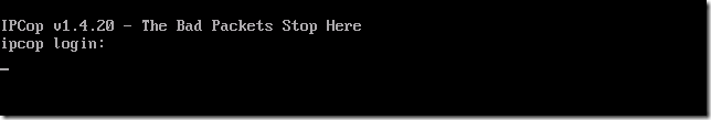 Your system will boot and you will see an ‘ipcop login:’ prompt when it has booted up.