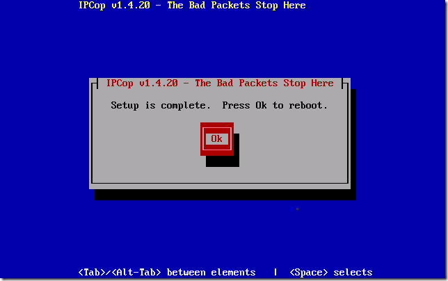 Your IPCOP VM will now reboot, and you will be able to access the web console of your system from a locally connected VM.