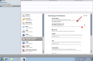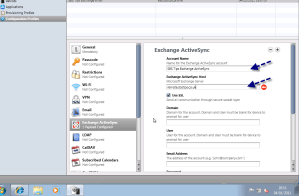 Now with the general settings finished, lets move on to the Exchange settings. In the left hand pane notice the Exchange Active Sync logo, click on this.