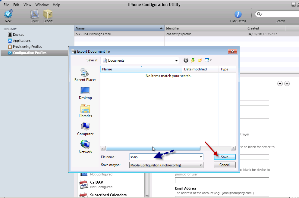 I am calling mine – sbsip – short for sbstips iPhone. You will do well to choose a short name as well, as you will see in a moment. Note the file extension .mobileconfig