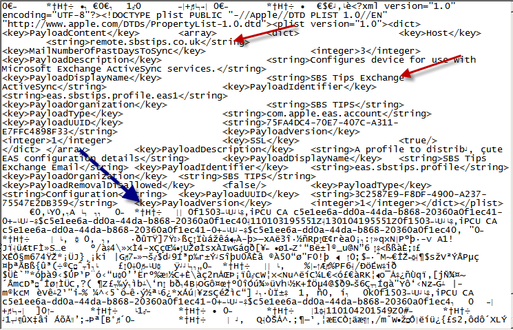 If you open up your .mobileconfig file, you can see it is simple XML and the info is easily readable.