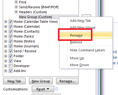 Right click this new group, and click Rename, i am calling mine – Forward as Attachment – then click on OK