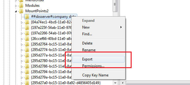 First, i exported the registry key and saved it. You can do that by Right Clicking the key, and clicking Export.