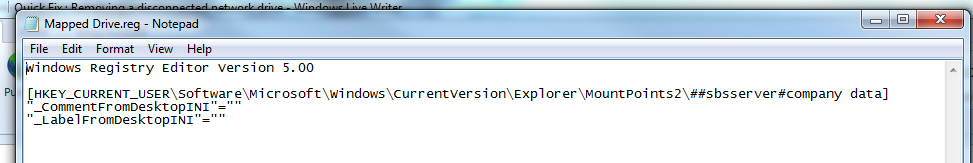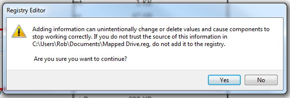 You now have a .REG file that will remove this drive mapping from your computer. To run the file just double click it,