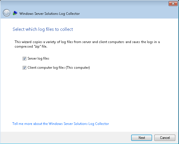 The log collector is available for use on SBS Essentials, Windows Home Server v2 and Windows Storage Server 2008 R2 Essentials and if you missed the link above you can download the Log Collector as an Add-in or Standalone MSI, from here: RTM Download.