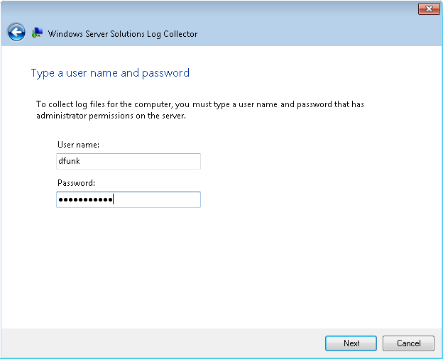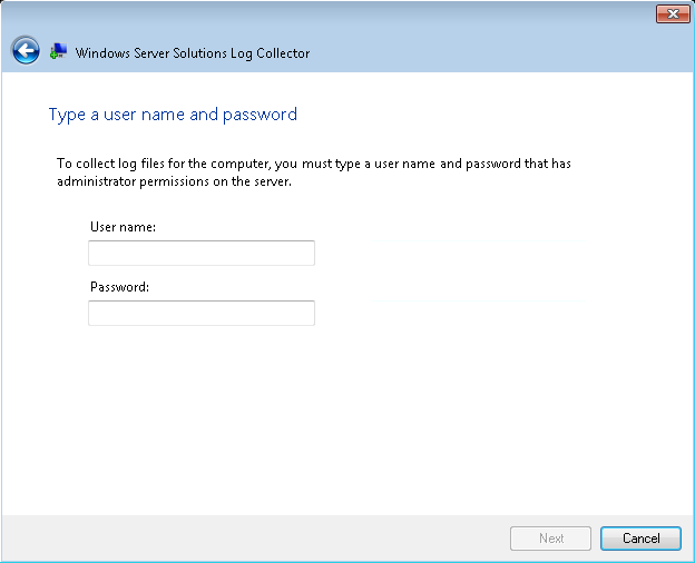 You will need to provide an Administrator level username and password to collect the server logs.