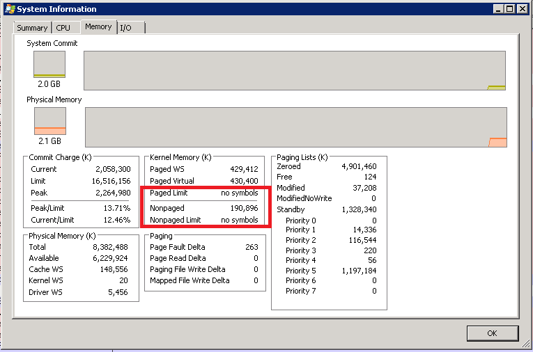 It can also show us a very crucial piece of information, if you are having problems with the Nonpaged Pool. That is, the limit of your Nonpaged Pool.