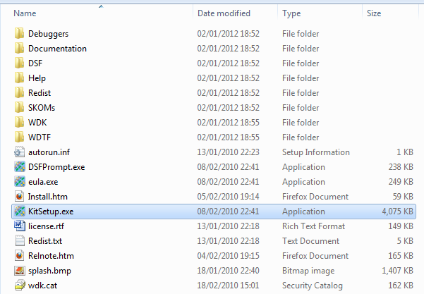 To get Poolmon installed you will need to download the Windows Driver Kit. This downloads as an ISO, so either burn it to a CD, (or DVD) or like me, extract it out using MagicISO. Once extracted, run the file KitSetup.exe