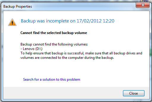 I know a lot of people will simply ignore that, but i was thinking, well ok, the drive is gone, so how do i configure the backup to not try to back it up?