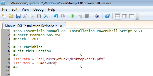 To execute the script enter .\”Manual SSL Installation Script.ps1”