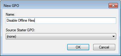 Enter a Name for your Policy – something like – Disable Offline Files. You can ignore ‘Starter GPO’