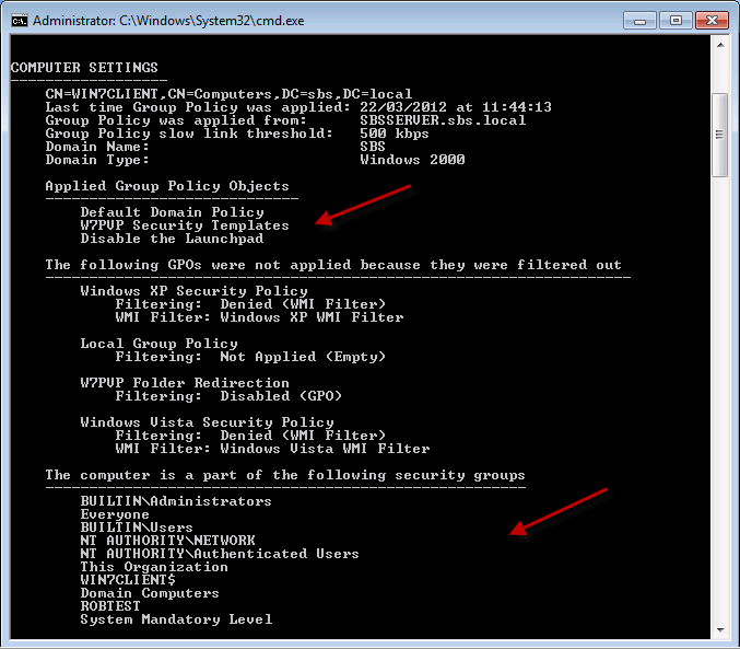 After a reboot you can see that the Policy is now applied, and the Computer shows a member of our new Group.