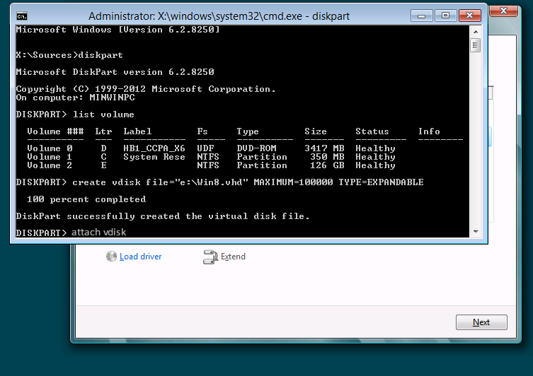 Next we need to attach the VHD, and we can do that by typing