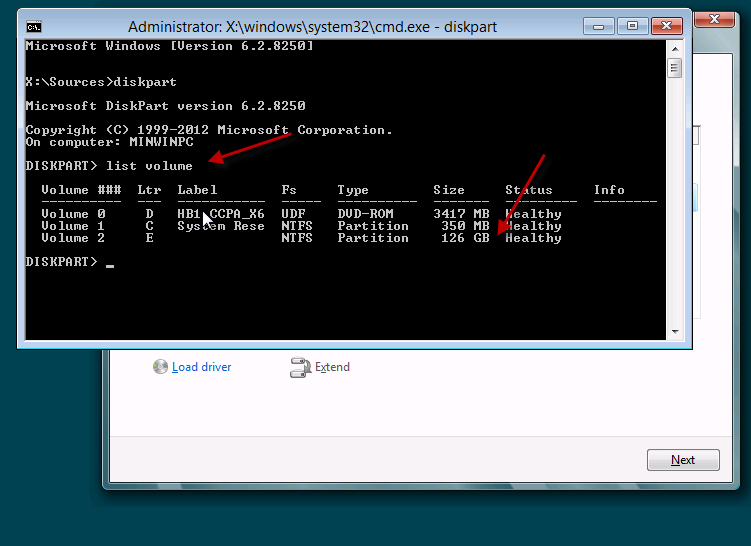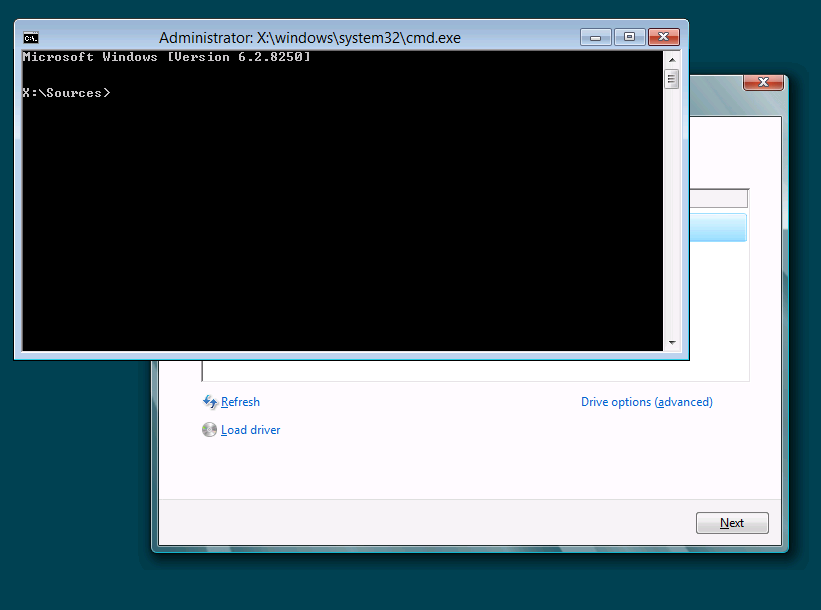 This will launch a CMD window, from which you can launch DISKPART.
