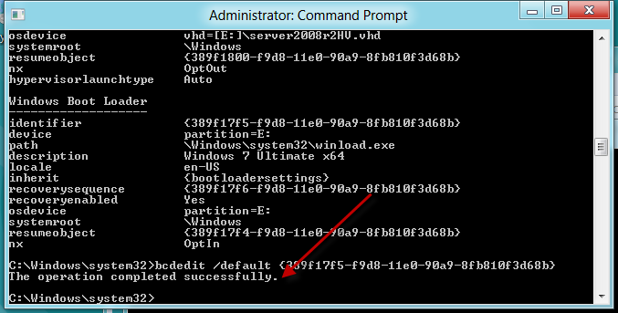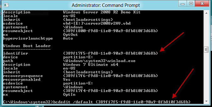 I wanted to set Win7 back to the default, so i find the Identifier for Win7, and then enter: