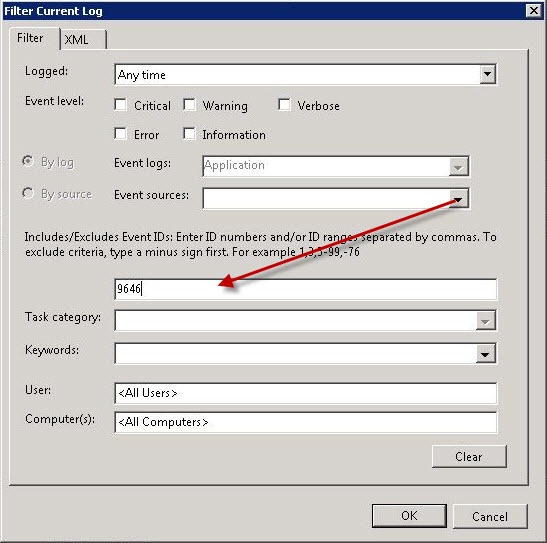 - To quickly see if your server is having this problem, you can load up the Event viewer on your server, then filter the Application log for any events with ID 9646.