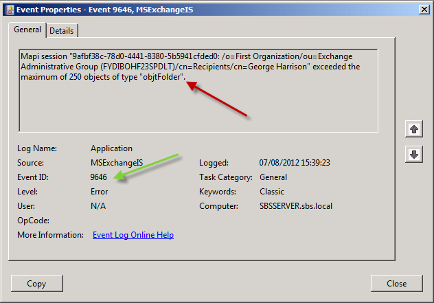 Outlook is losing my email?!? Event ID 9646 (Application Log)