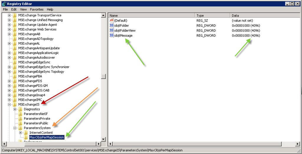 HKEY_Local_Machine\System\CurrentControlSet\Services\MSExchangeIS\ParametersSystem