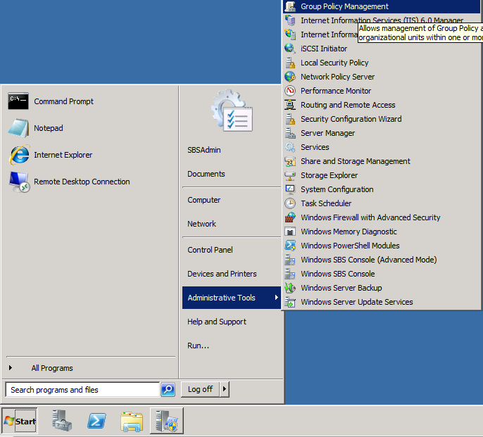 On your SBS Server, Click Start, All Programs, Accessories, click “Command Prompt”.