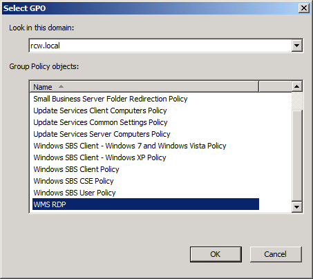 Browse to the Network, server name, share name and select the WMS RDP file that you created in the earlier step, then click Open. Do not use the local hard disk on the server to browse to that file, use the UNC path!