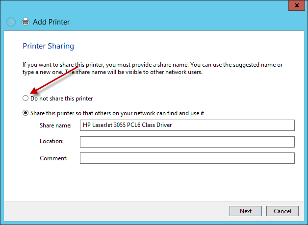 You can chose to share the printer at this point, but i would change that to No for the time being.