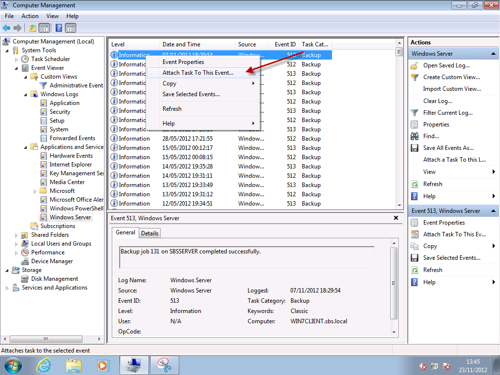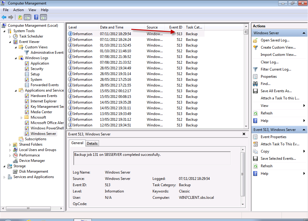 Are there corresponding events on the server (now 2012 R2 Essentails)? Can’t seem to find them. I’ve seen the server trigger/manage the backup sequence. Would like to know why one client is incomplete, for example.