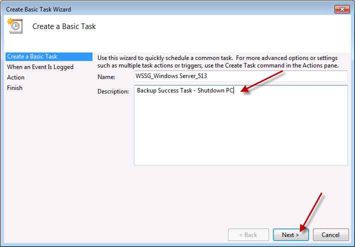 The ‘Create Basic Task’ wizard starts, and you can follow it through to add your shutdown command.