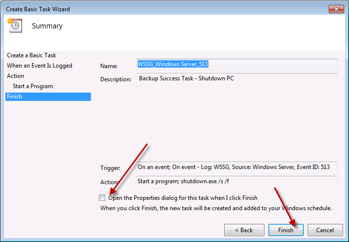 We schedule the backups to run between 7pm and 11pm so all the machines will have time to backup. It is really simple to set this shutdown task up, of course some people prefer their machines to go to sleep or hibernate but in this case we actually want to turn off those machines.