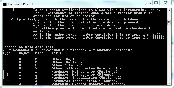 More info can be found on shutdown.exe by entering shutdown /? into a CMD prompt, another very useful resource for the command is this page.. http://ss64.com/nt/shutdown.html.