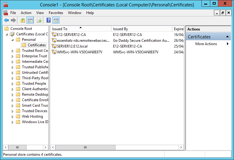 If you go to that link you get a TechNet wiki article about SBS 2011 Essentials, and it doesn’t answer this particular issue other than to give some guidance on general issues with certificates.