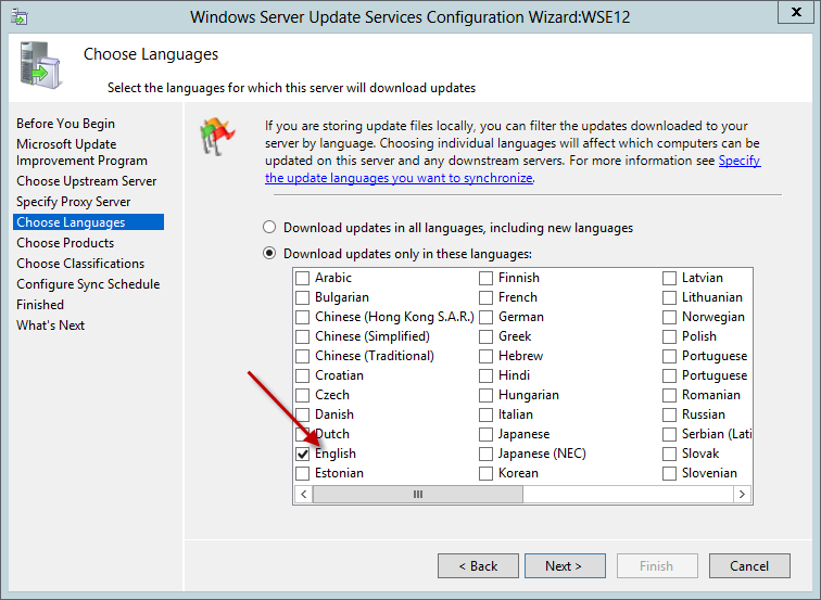 You can chose things like whether to sync updates in different languages, what products to sync, the type of update to sync and also the schedule.