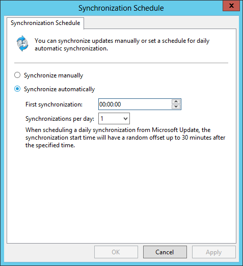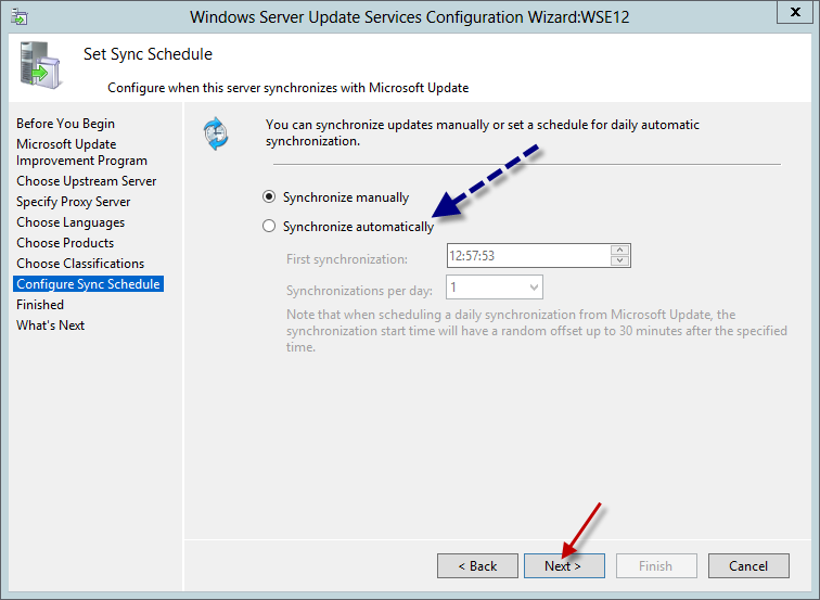 I am choosing to leave the synchronisation schedule as manual until i have completed my WSUS Configuration.
