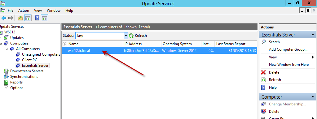 Would you please post the settings for when WSUS is installed on the same WSE12R2 box? I can’t seem to get my Essentials Server to show up under the correct COMPUTERS entry. It stays in UNASSIGNED COMPUTERS group. Thanks.