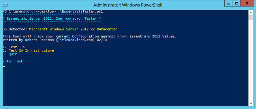 powershell2xa4I had a support case this week where it became apparent to me that there is no quick and easy way to test Essentials Servers for Configuration errors. Manually working through IIS or Certificates is prone to human error, as was proved to me, by me missing certain key things.