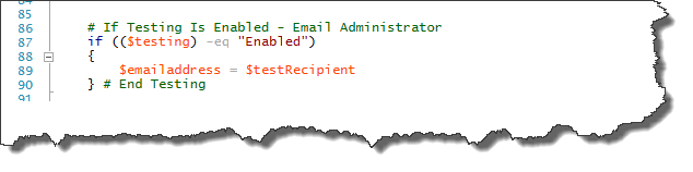 $testing = “disabled” # Set to Disabled to Email Users