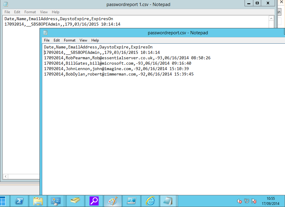 Creating a slightly modified version of the script to remove the email component altogether and turn it into a reporting tool, we can quickly see whether or not users are matched by the script, and the date there password will expire/expired.