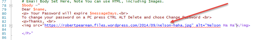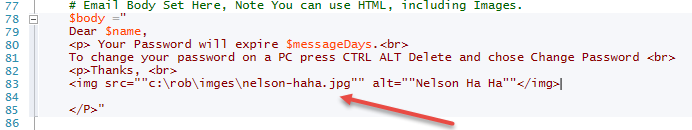 The body section starting on line 77 is relatively sparse when you download it, and it can be fully customised using any HTML code you like. The important thing to remember is you need to double quote anything that requires quotes. Otherwise PowerShell thinks you are ending the section contained within the quotes..