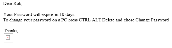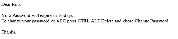 “Yesterday I got a notification email that said I had two days before my password expires but today I got an email that says it expires today. My password doesn’t actually expire until tomorrow but the email says it expires today.”
