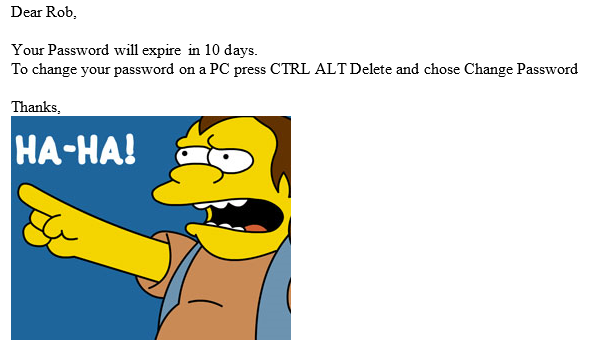 The red underline disappears, and we can begin to mock those who need a reminder to change their password.