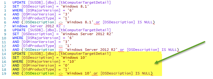 SET [OSDescription] = ‘Windows 10 Home’