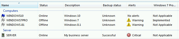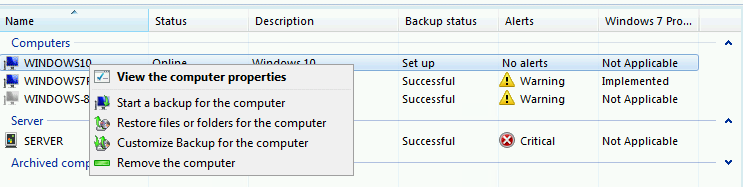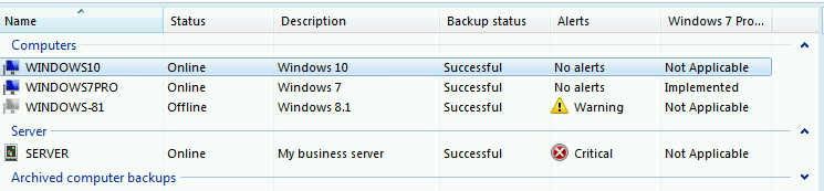 Manually starting that service updated the status of the clients in the Dashboard and correctly reported that Windows 10 Client PC Backup was ‘Set Up’ rather than unknown.