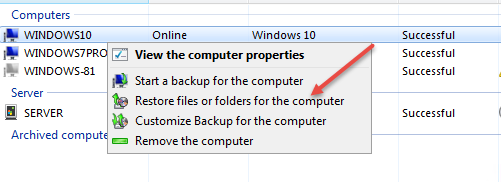 Switch to the Devices tab, right click the machine and hit Restore files or folders for the computer.