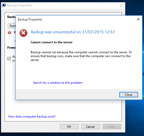 Switching our attention to the most important feature (imo) of Essentials, Client backups. Triggering a manual backup from the client failed.