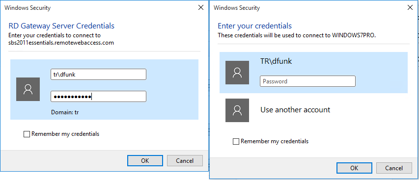 You will be prompted to login TWICE – that’s once for the RDP Gateway and once for the PC itself.