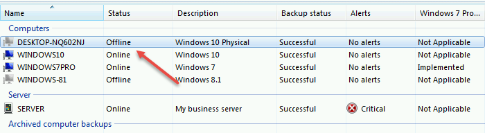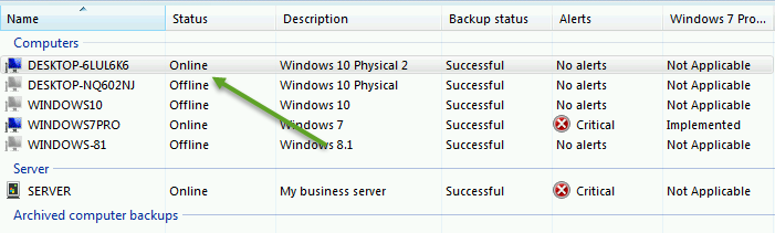 However, i noticed after the restore that the computer did not show as Online in the Dashboard.