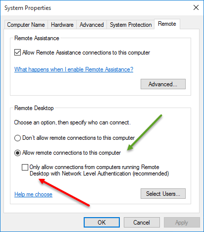 I have to be honest and say this puzzled me somewhat. If you read my post on SBS 2011 and Windows 10, you will have seen that RDP connections were disabled and i had to enable a GPO to allow them. It is possible of course that part of the 2012 Connector install switches this to ‘On’ for that very reason, However it is worth also noting that it has been enabled with the less secure option to ‘not require NLA’.