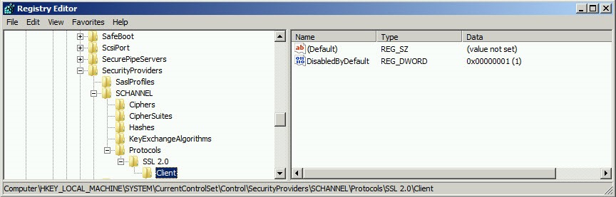 You will see that the SSL 2.0 protocol is defined, and by default the client component is disabled.