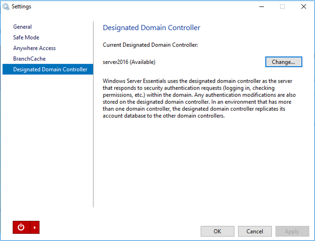 Staying in Settings, we can see the option for ‘Designated Domain Controller’.