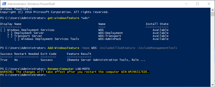 Add-WindowsFeature –Name WDS –IncludeAllSubFeature –IncludeManagementTools