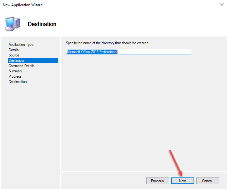 Enter a name for the directory within the Applications folder of the Deployment Share, I always accept the default here.